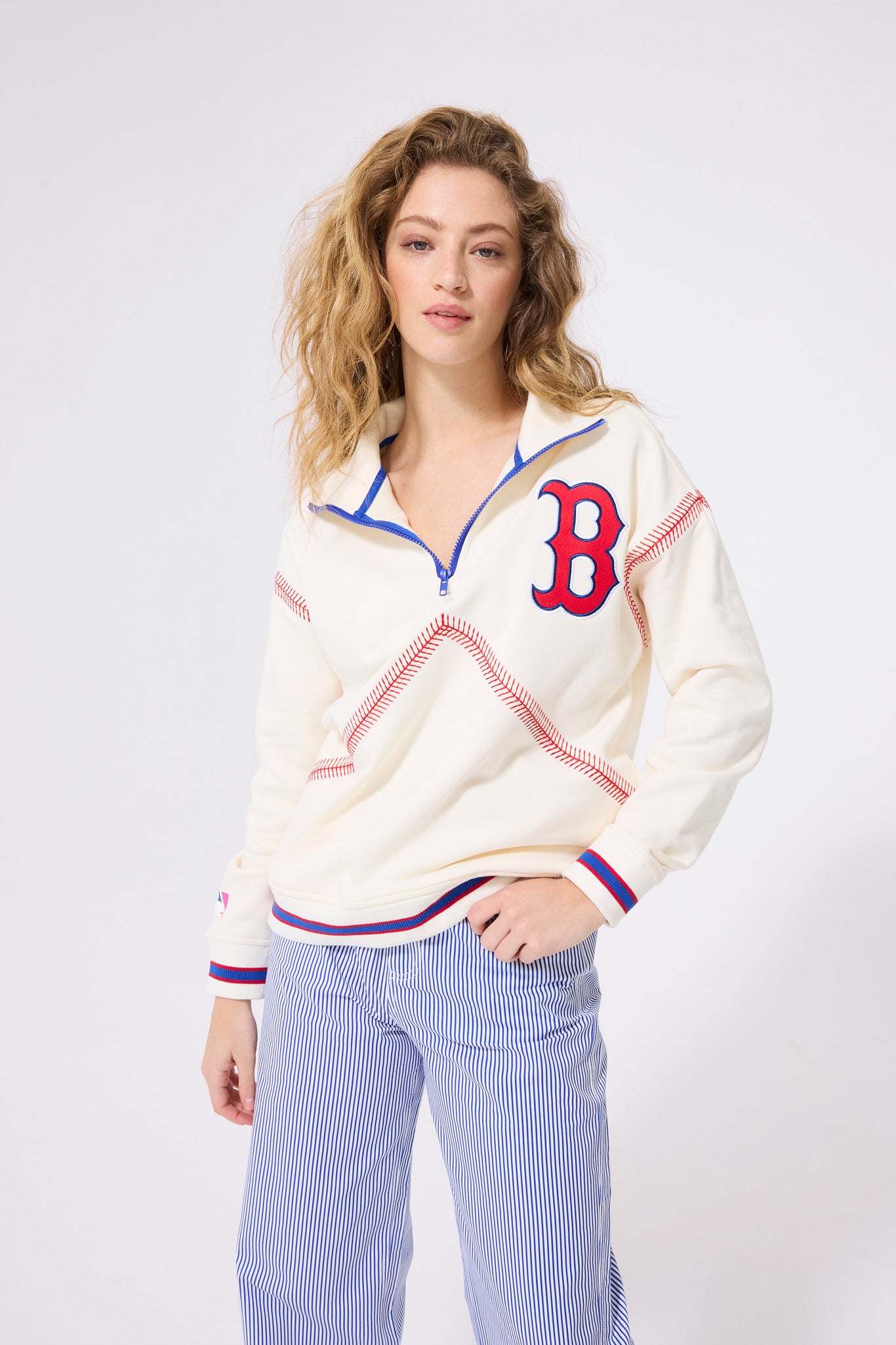 Boston Red Sox Quarter Zip with Baseball Stitch