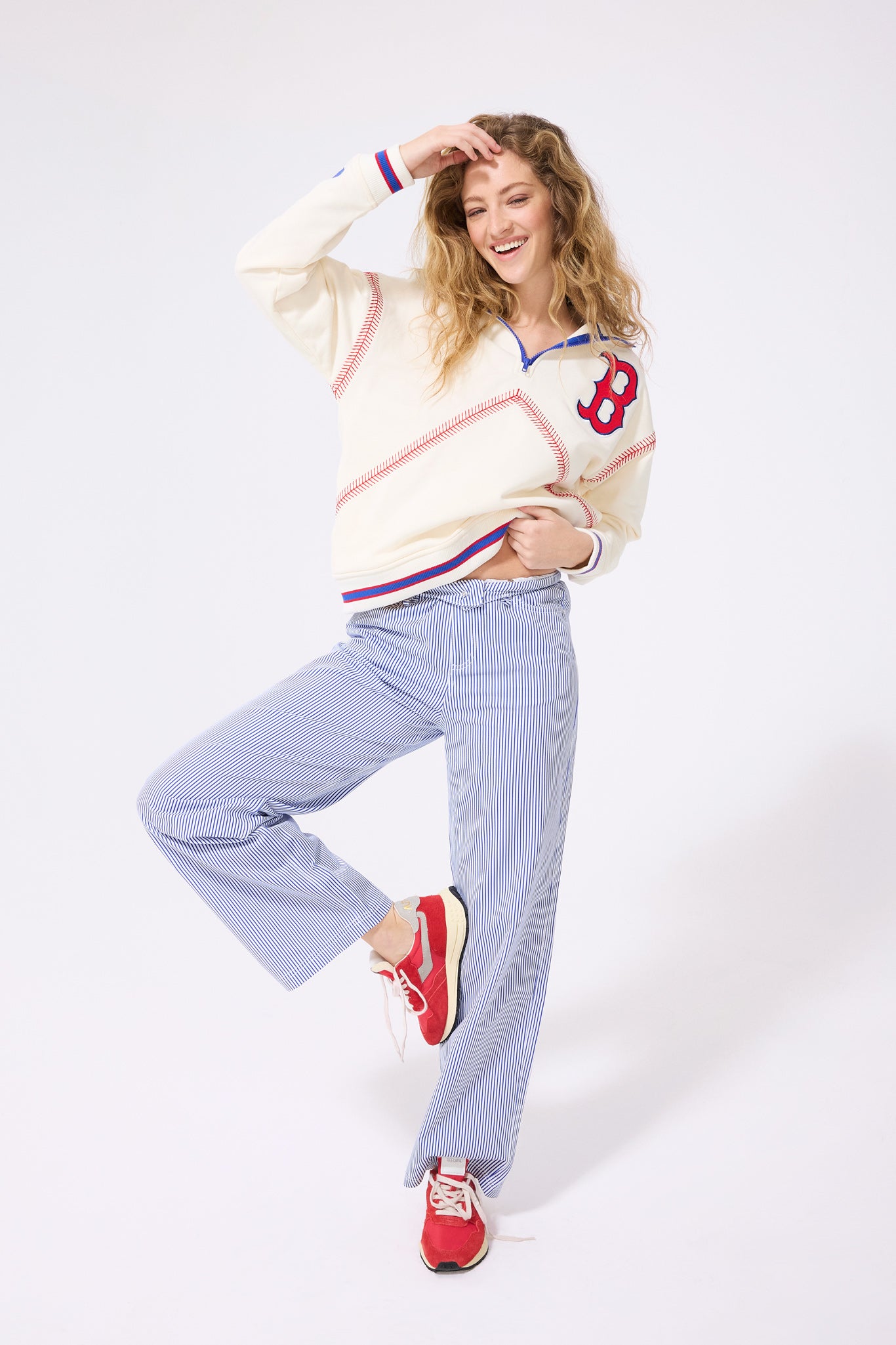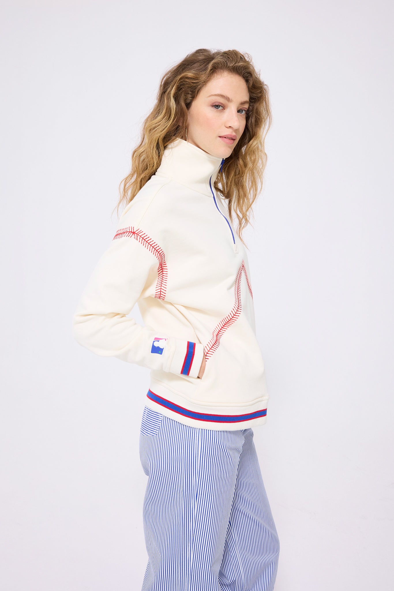 Oversized quarter zip with baseball stitch detailing