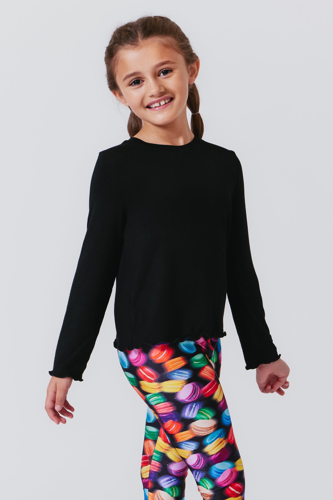 Long sleeve teeLettuce edge detailing on bodice and sleeve