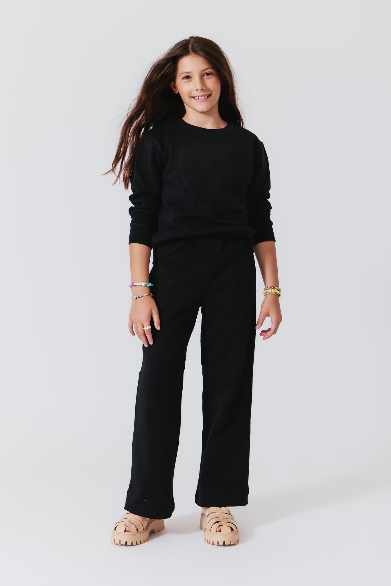 Girls Heart-Seamed Wide Leg Pant in Black