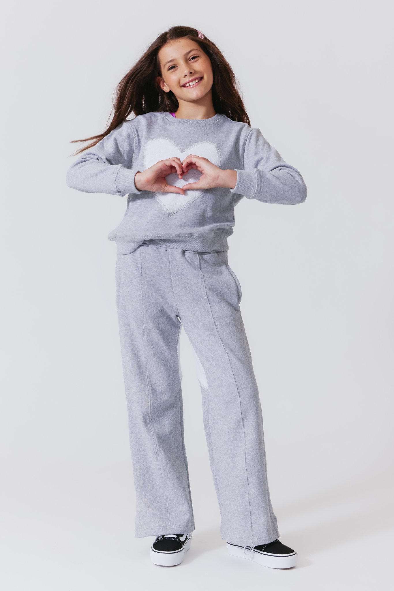 Girls Heart-Seamed Wide Leg Pant in Grey
