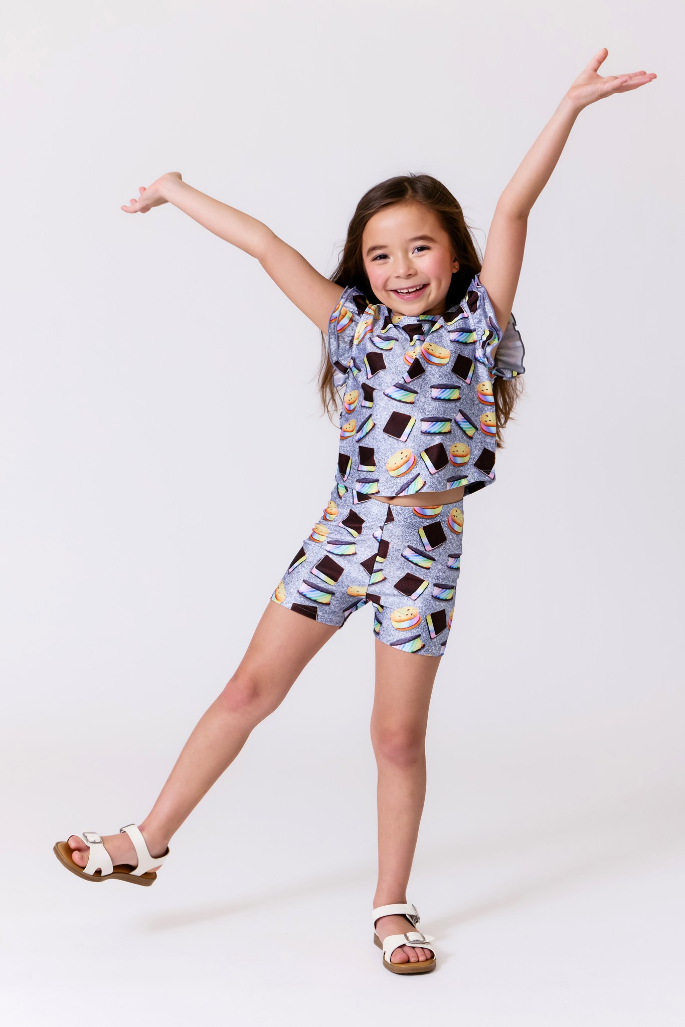 Girls Hi-Shine Booty Shorts in Rainbow Ice Cream Saucers