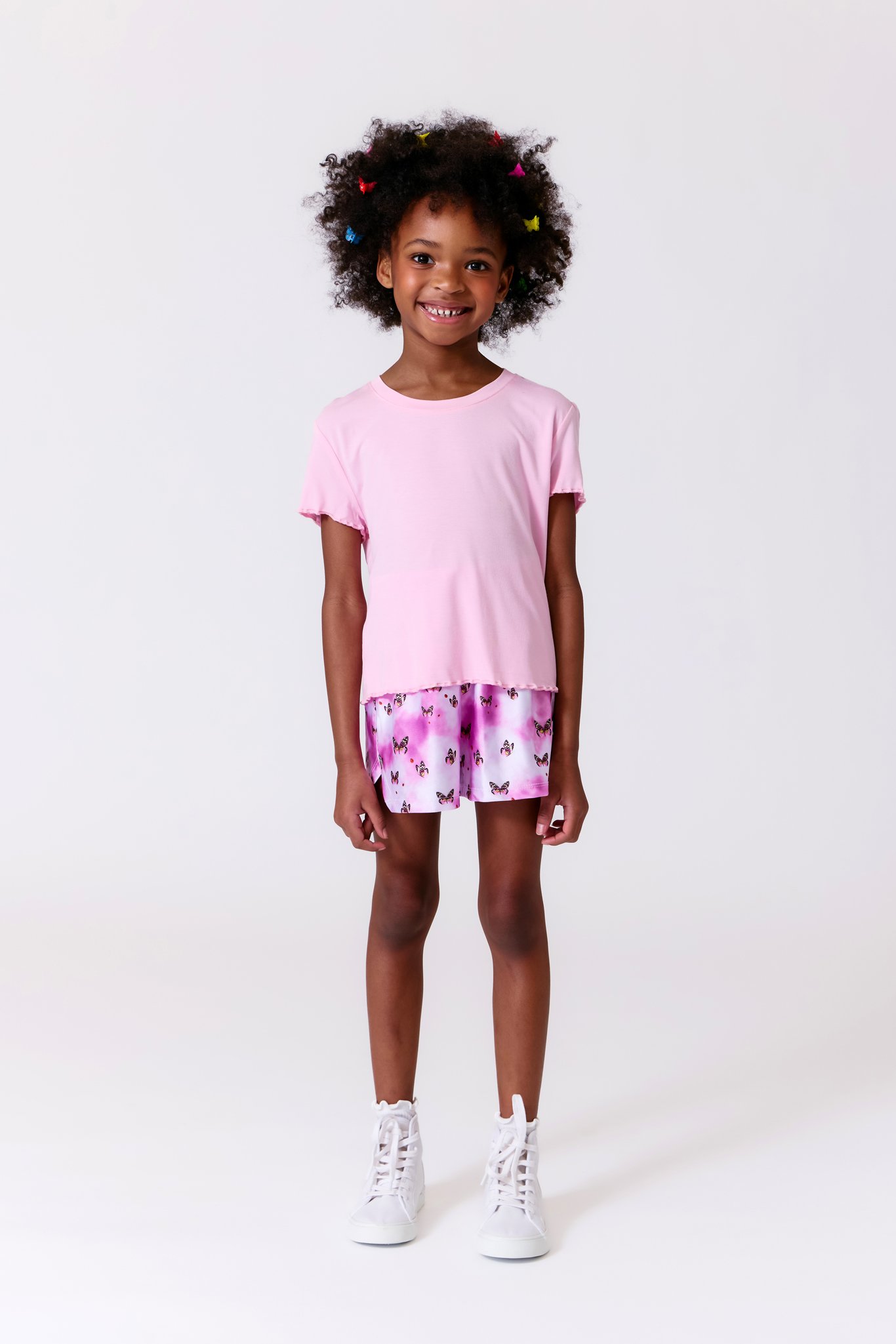 Short sleeve teeLettuce edge detailing on bodice and sleeve