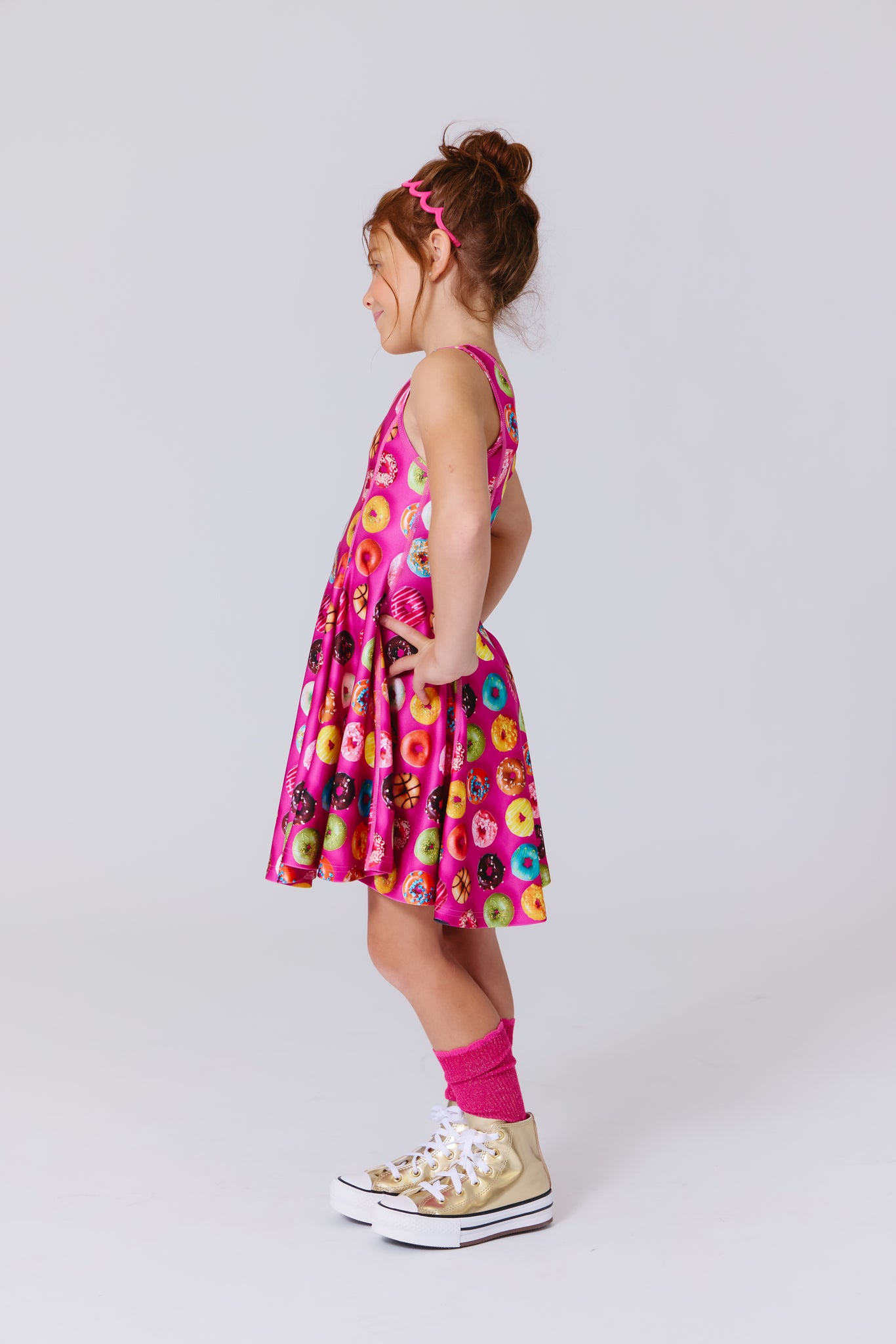 Flared dress, hits mid-thighForm fitting top, hits mid-thigh