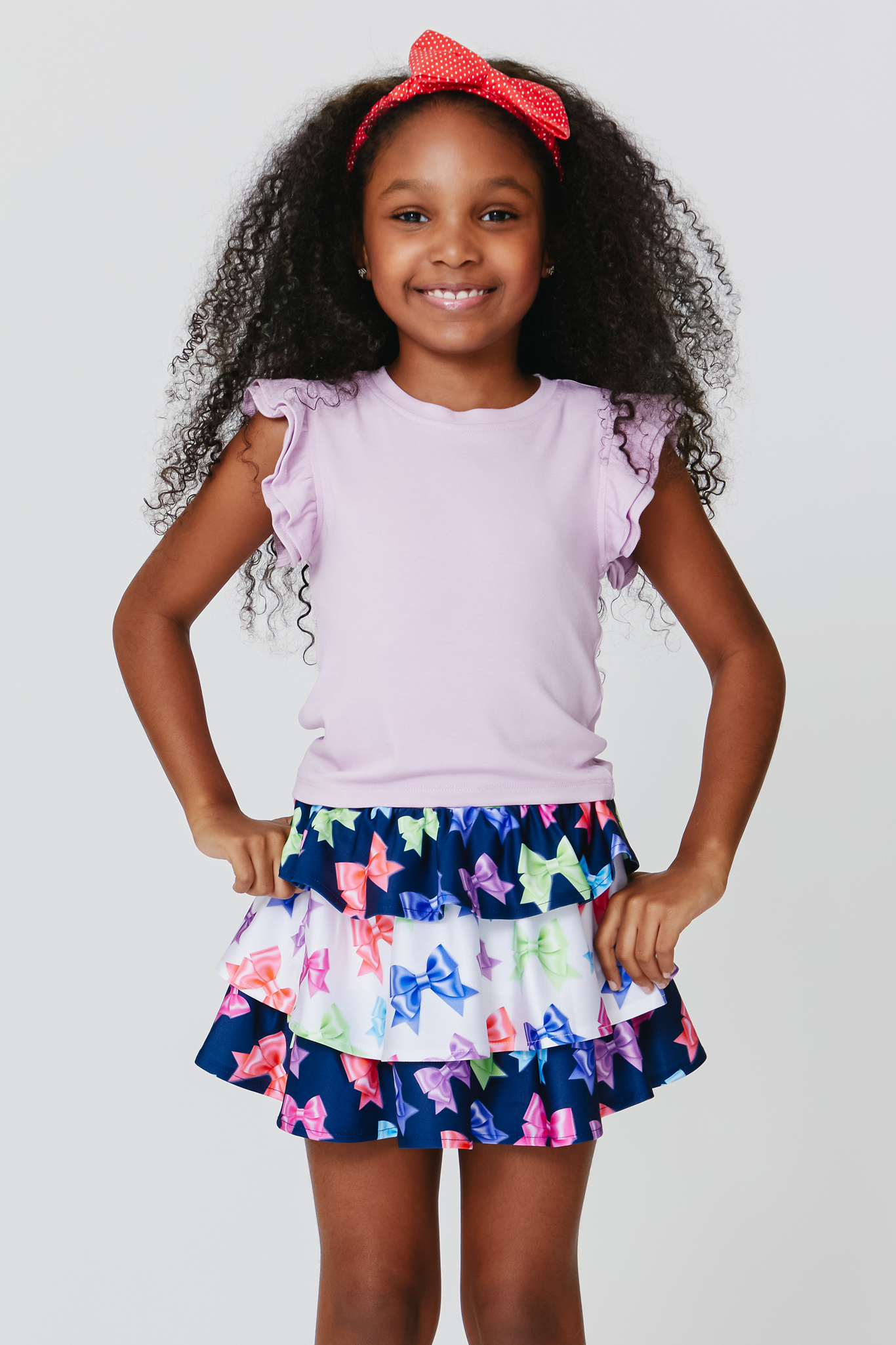 Girls Ruffle Sleeve Crop Tee in Lilac