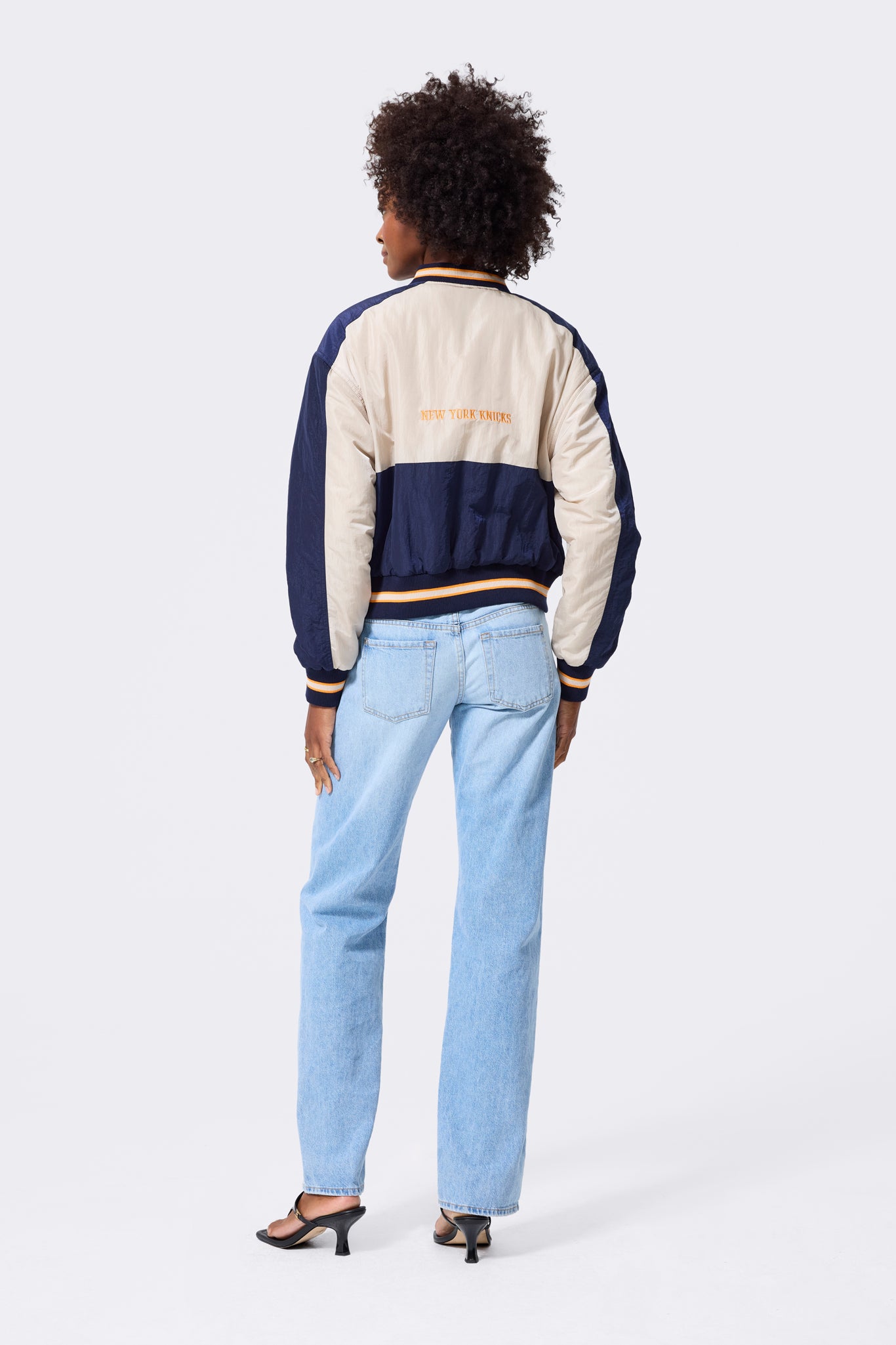 New York Knicks Cropped Bomber in Navy and Taupe