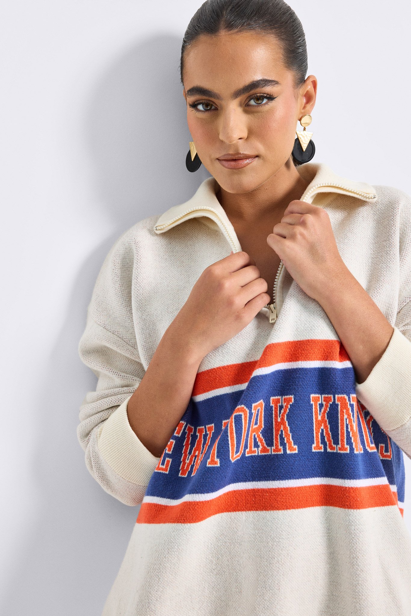 Vintage Inspired Knit Quarter Zip Sweatshirt