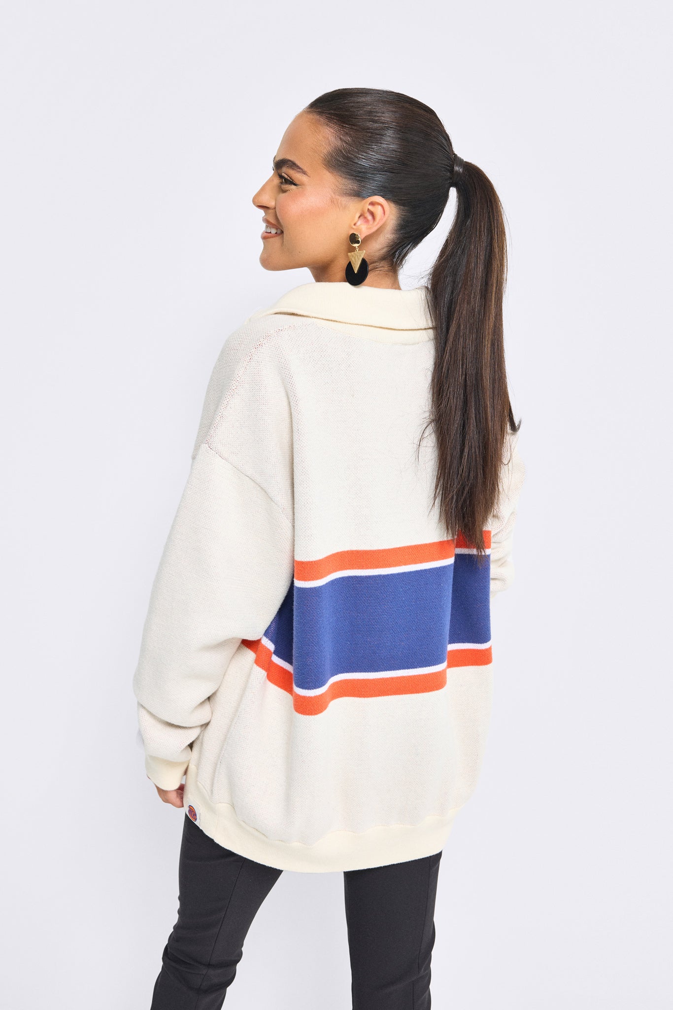 Vintage Inspired Knit Quarter Zip SweatshirtLoose fit, hits at the hips