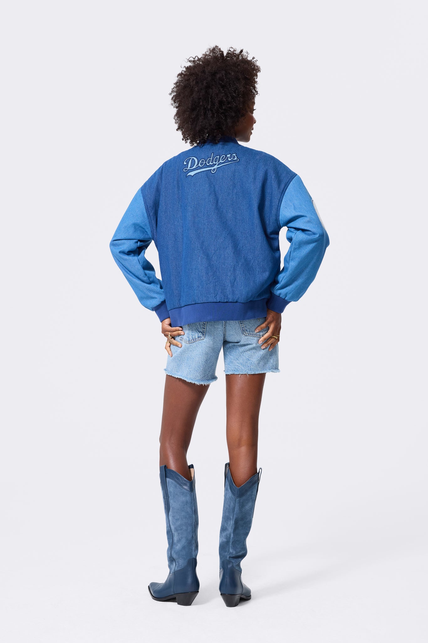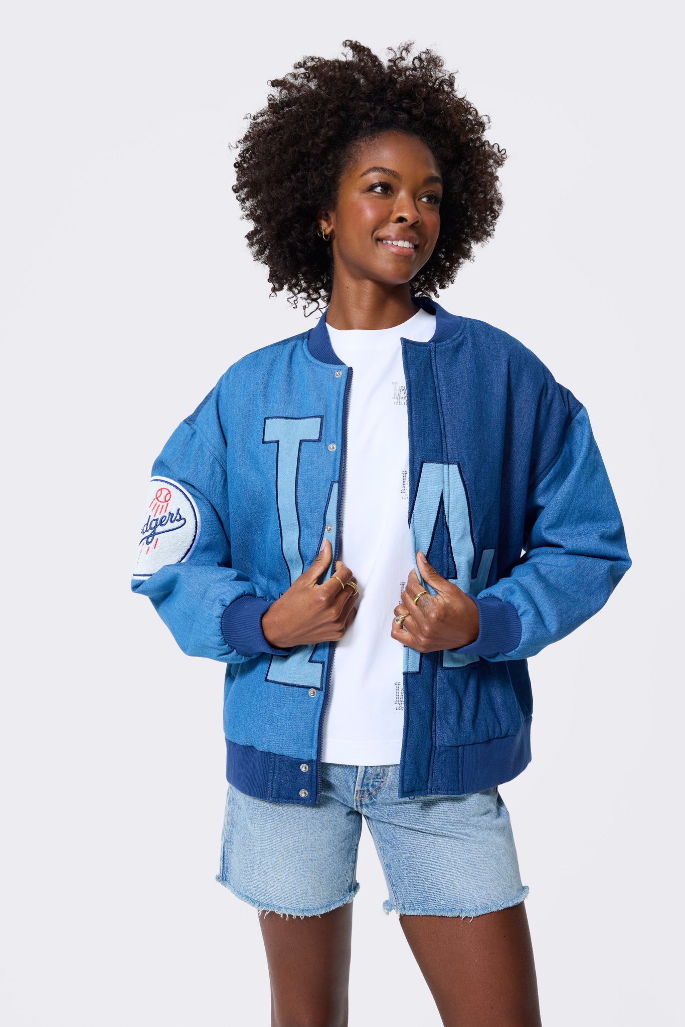 Los Angeles Dodgers Denim Blocked Bomber Jacket