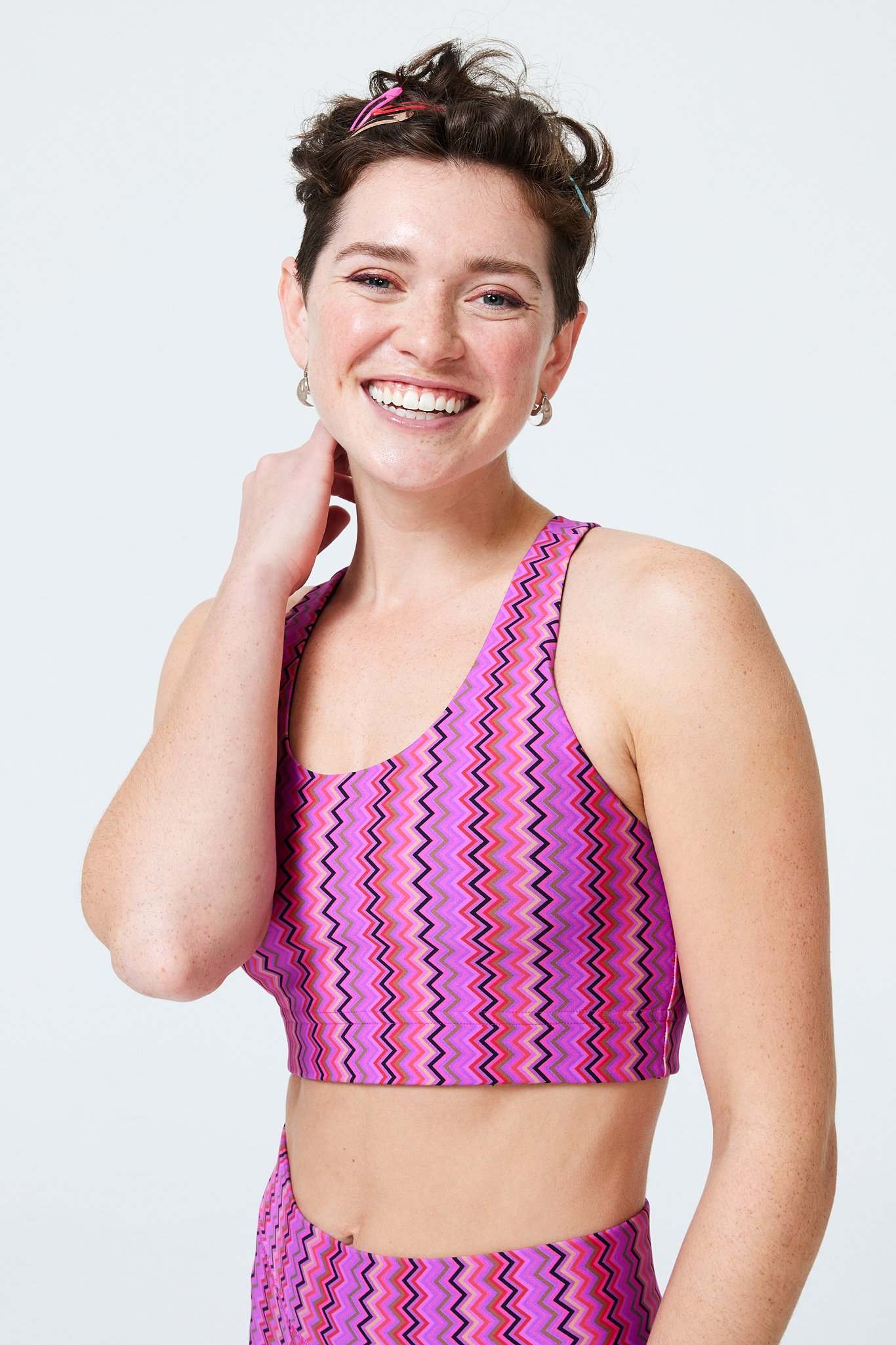 Scoopneck bra with racerback silhouette, providing light to medium support for most bust sizes