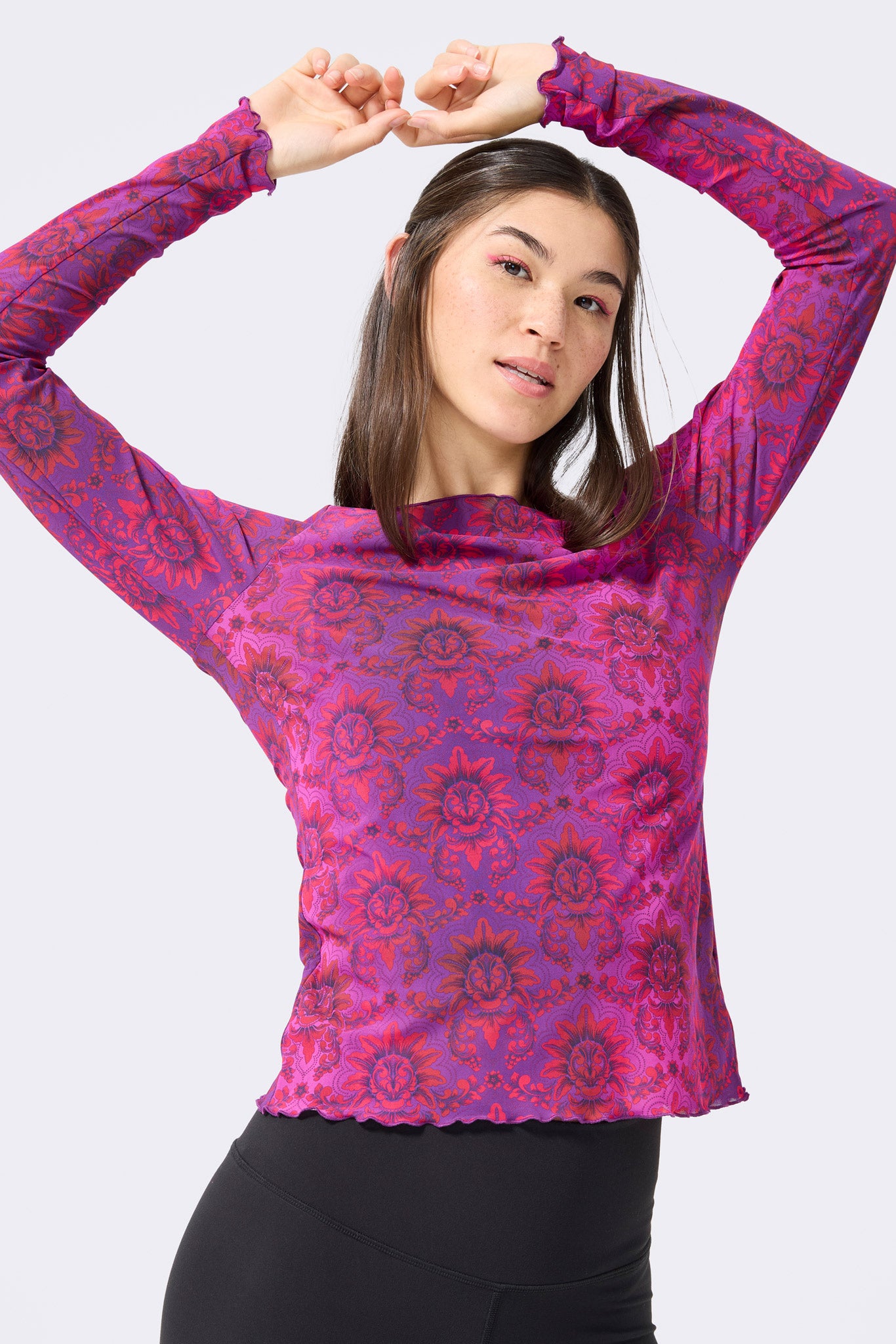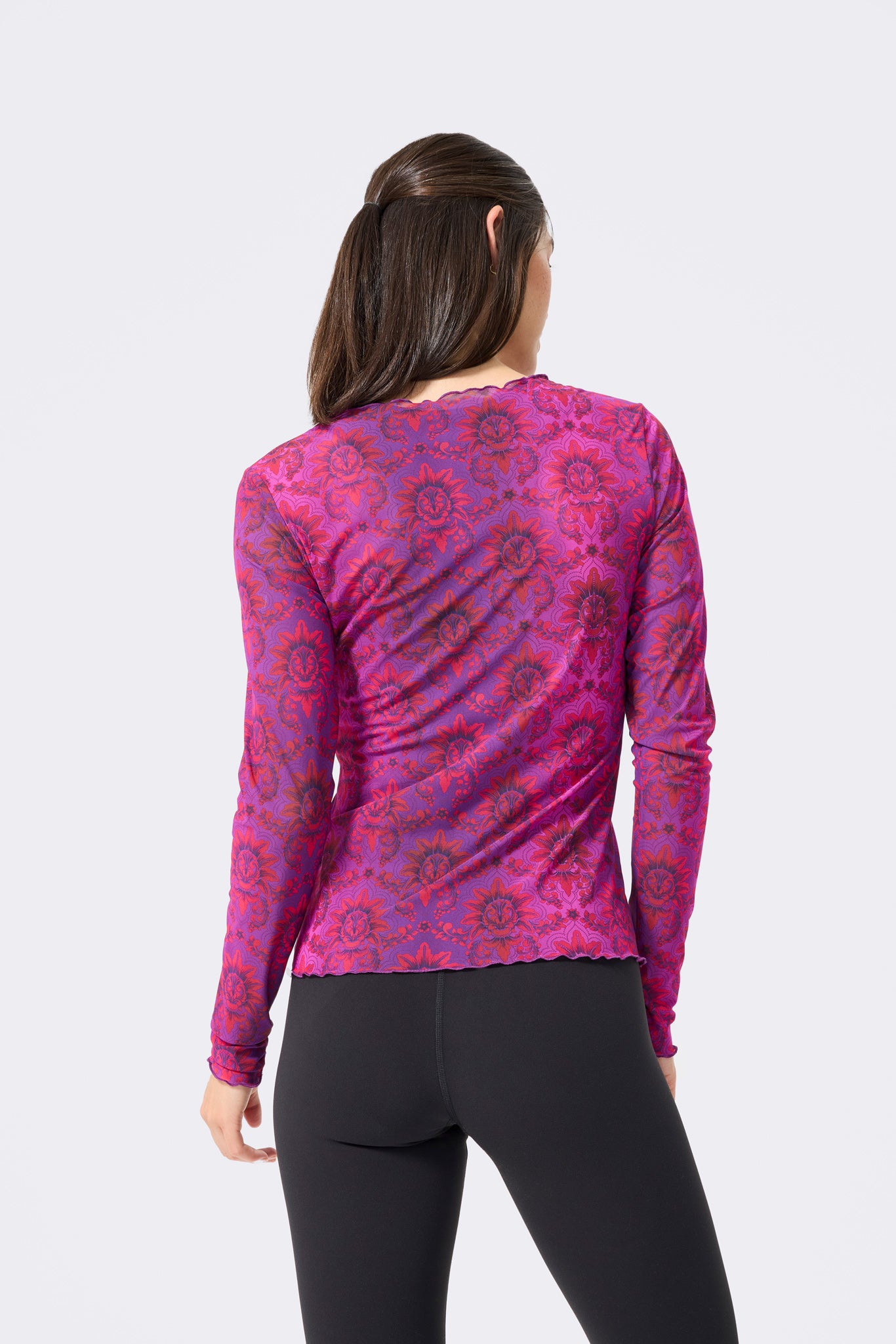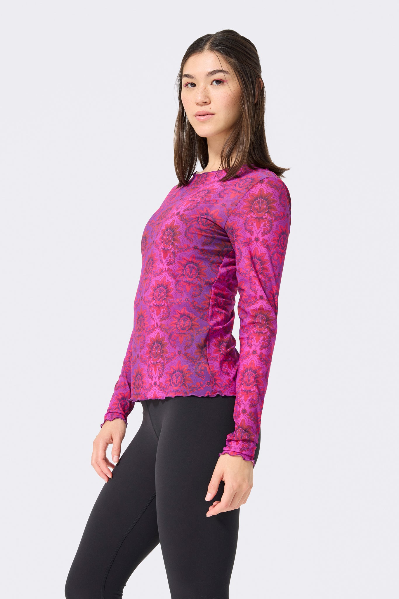 Mesh Lettuce Edge Long Sleeve in Ruby Damask
