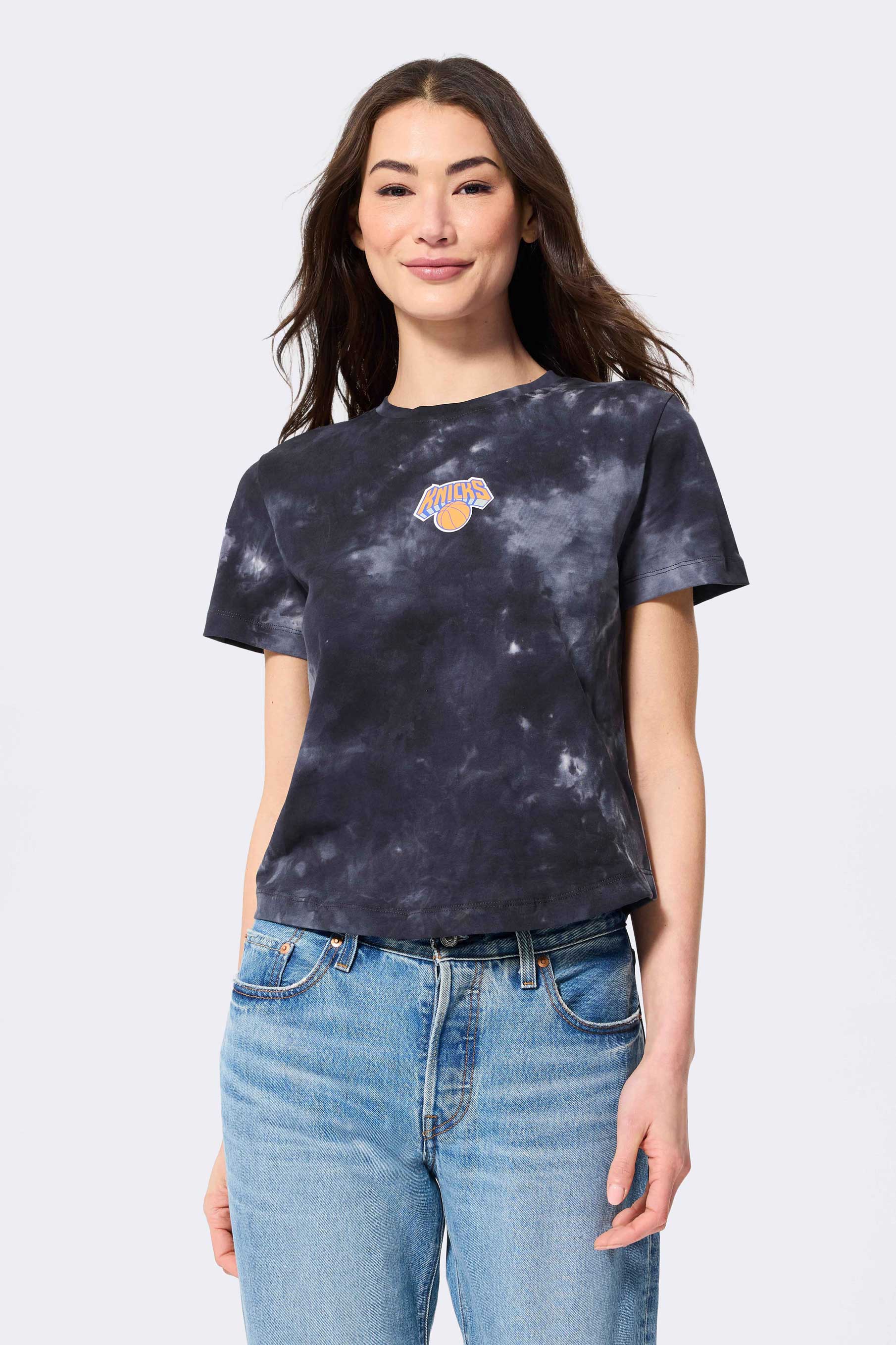 New York Knicks Tie Dye Baby Tee in Black