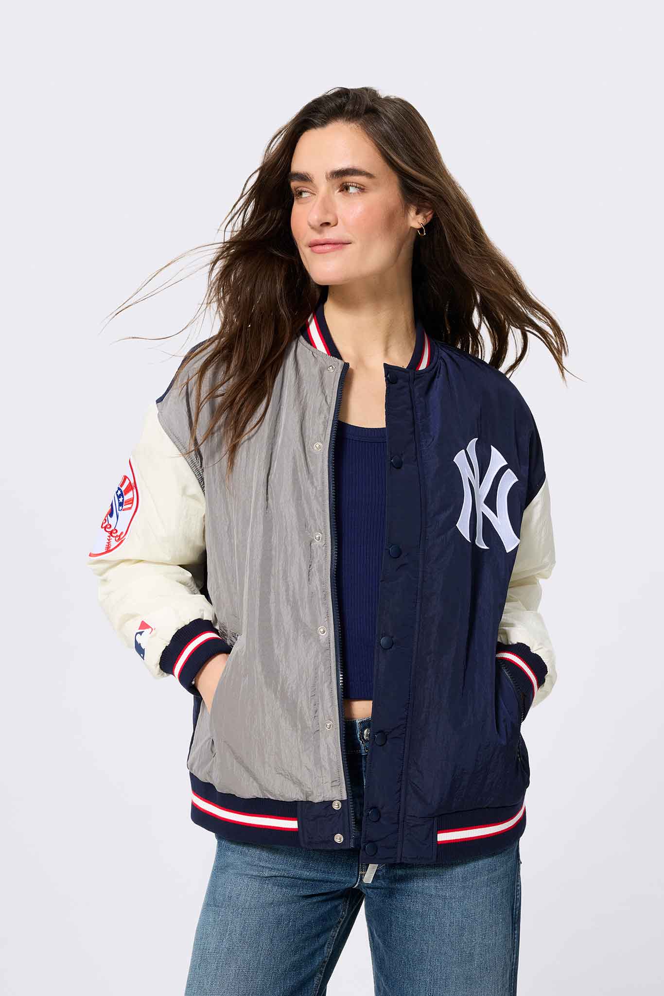 Colorblock Bomber JacketSlightly oversized, hits below hips