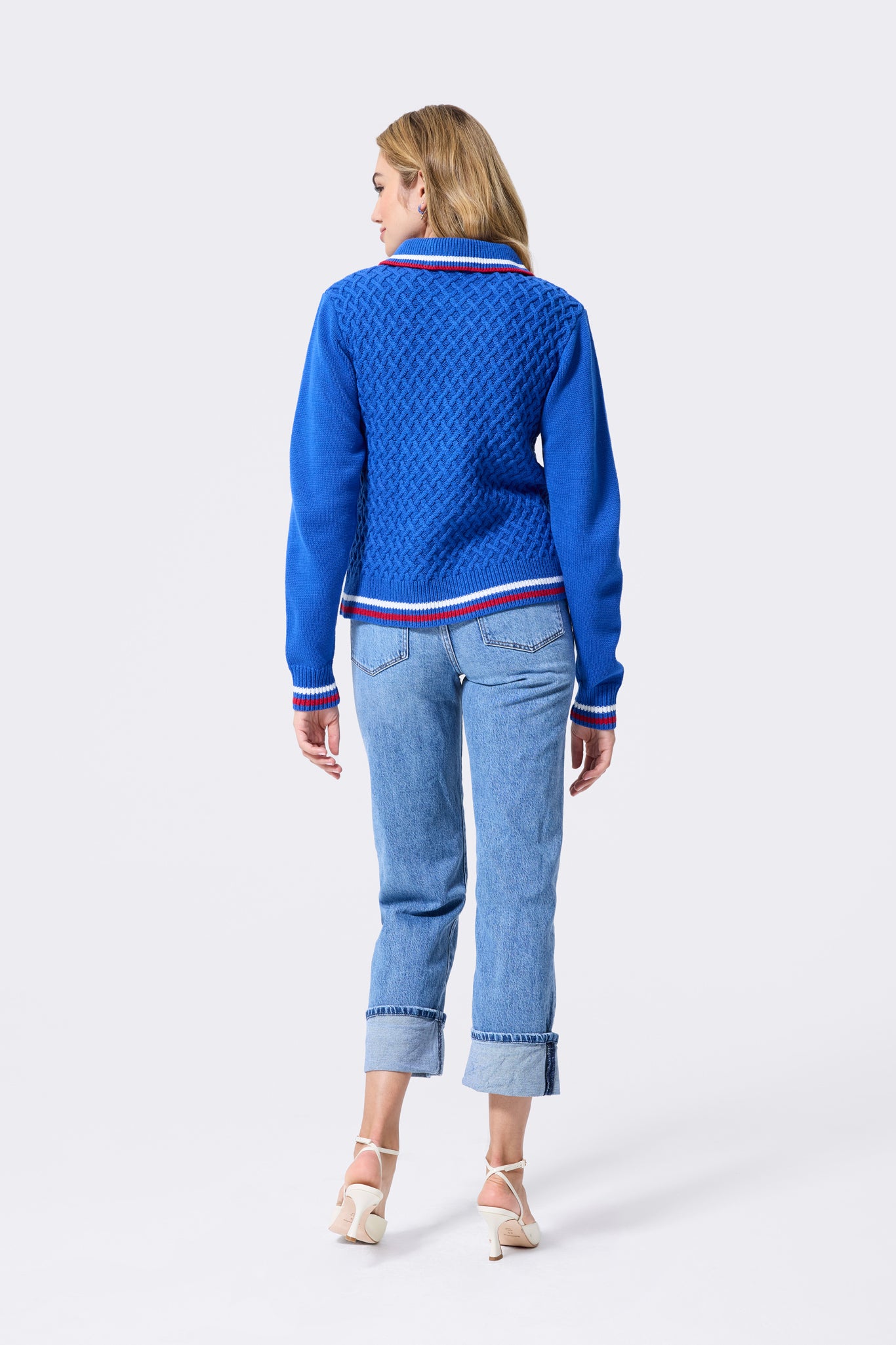 Collared, Mixed Stitch Full Zip Sweater