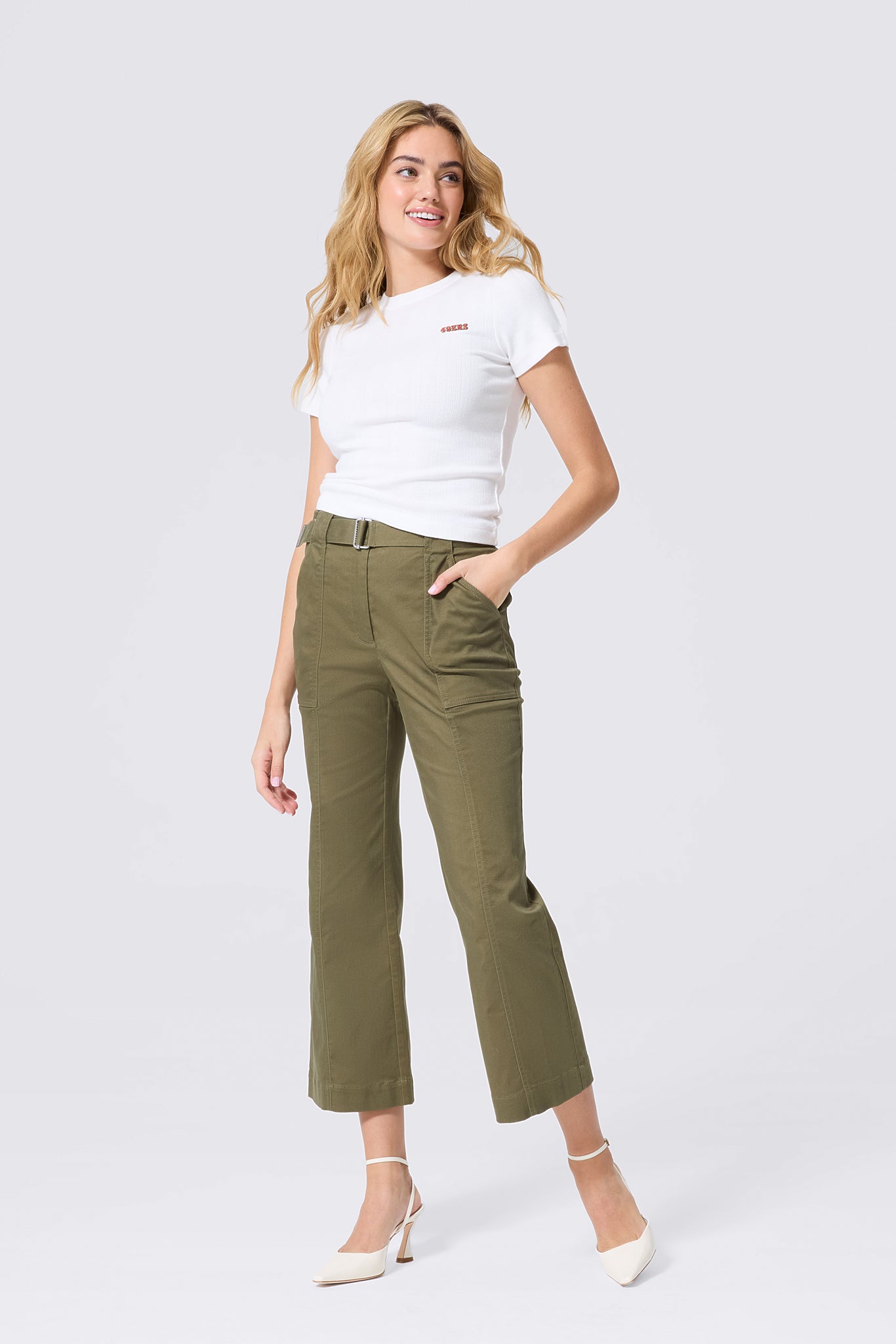 San Francisco 49ers Embroidered Baby Tee in Bright White