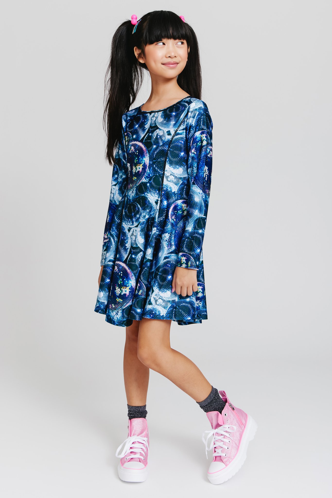 Toddler Hi-Shine Long Sleeve Skater Dress in Disco Fever