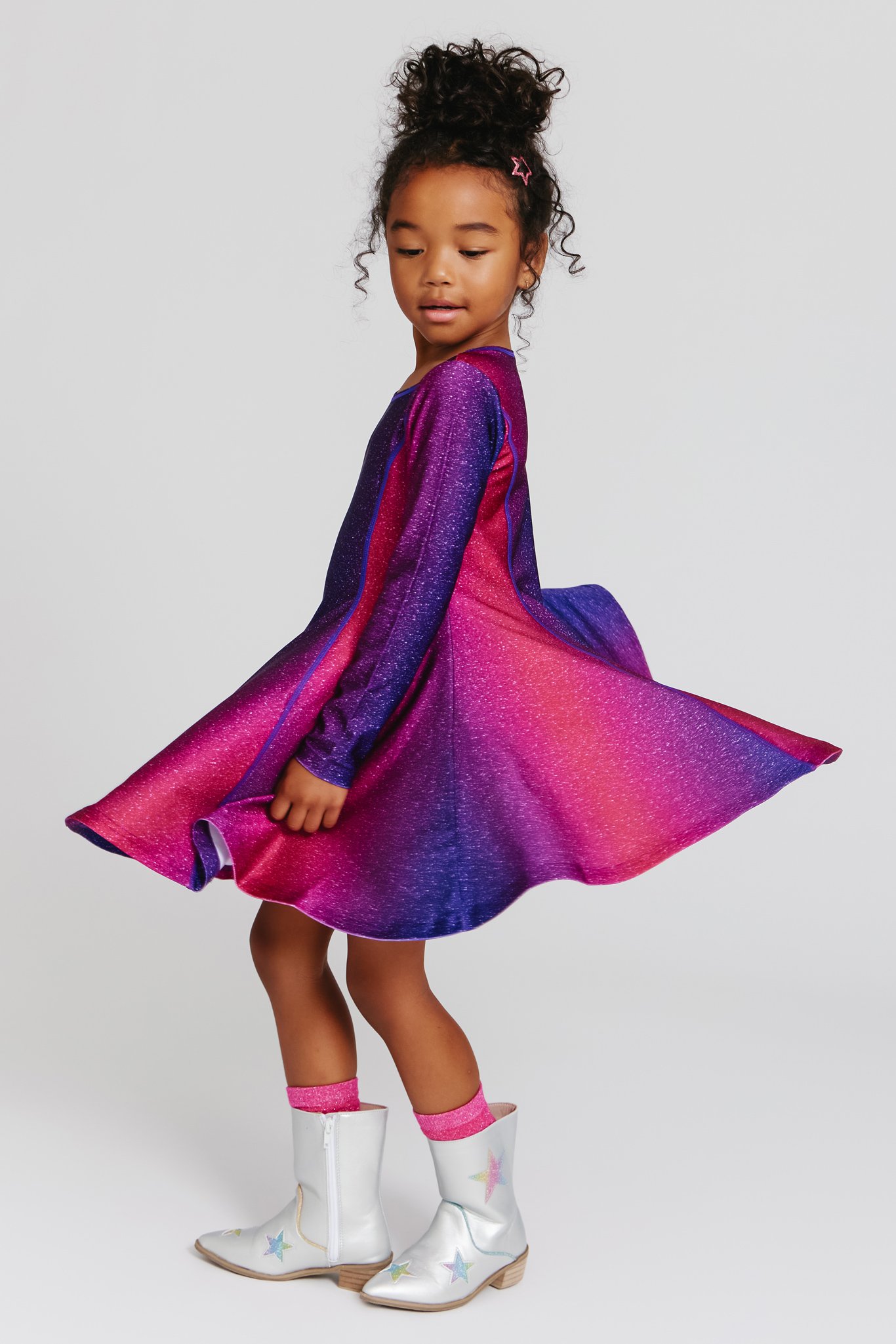 Toddler Hi-Shine Long Sleeve Skater Dress in Jewel Glitter