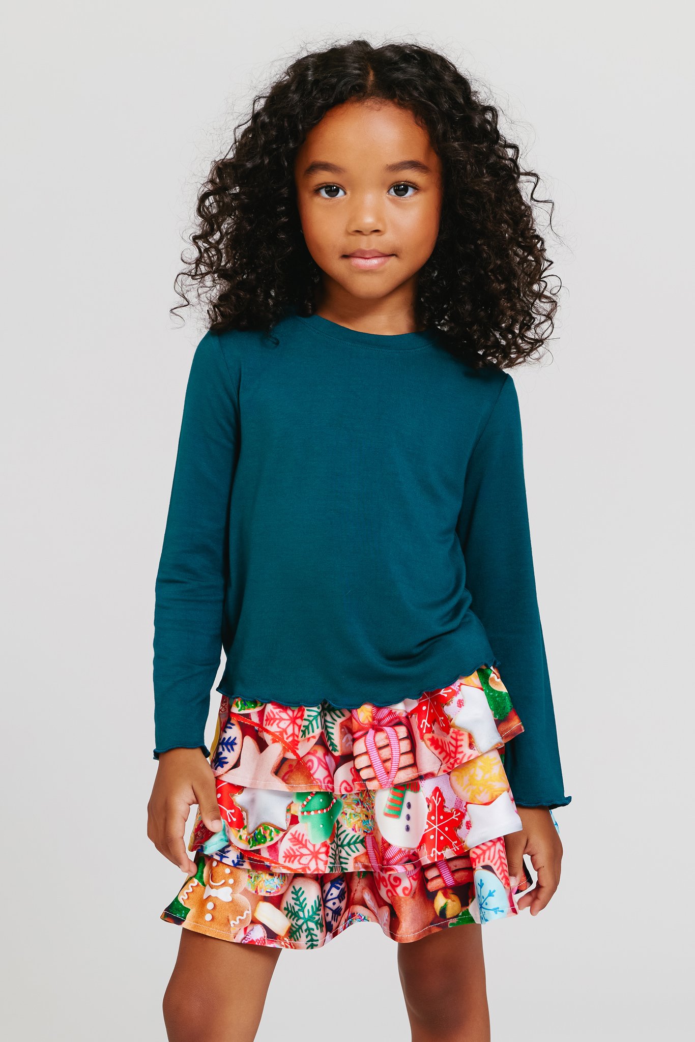 Toddler Lettuce Edge Long Sleeve Crop Tee in Cypress