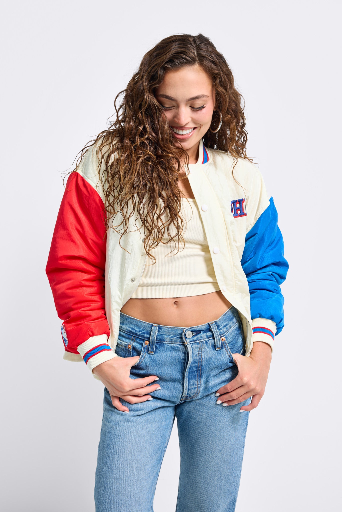 Colorblock Bomber JacketSlightly oversized, hits below hips