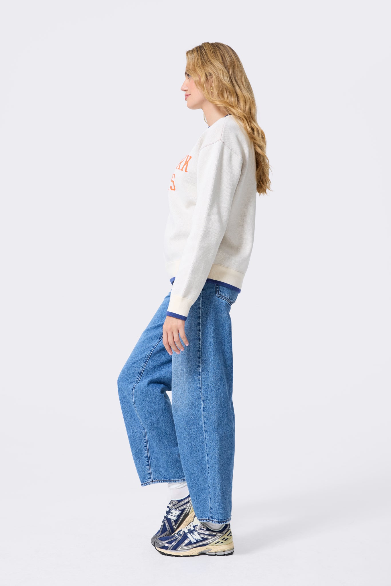 Oversized long sleeve knit crewneckOversized fit, hits at the hips
