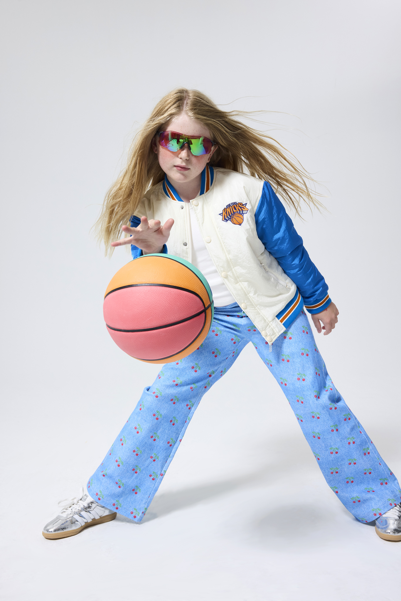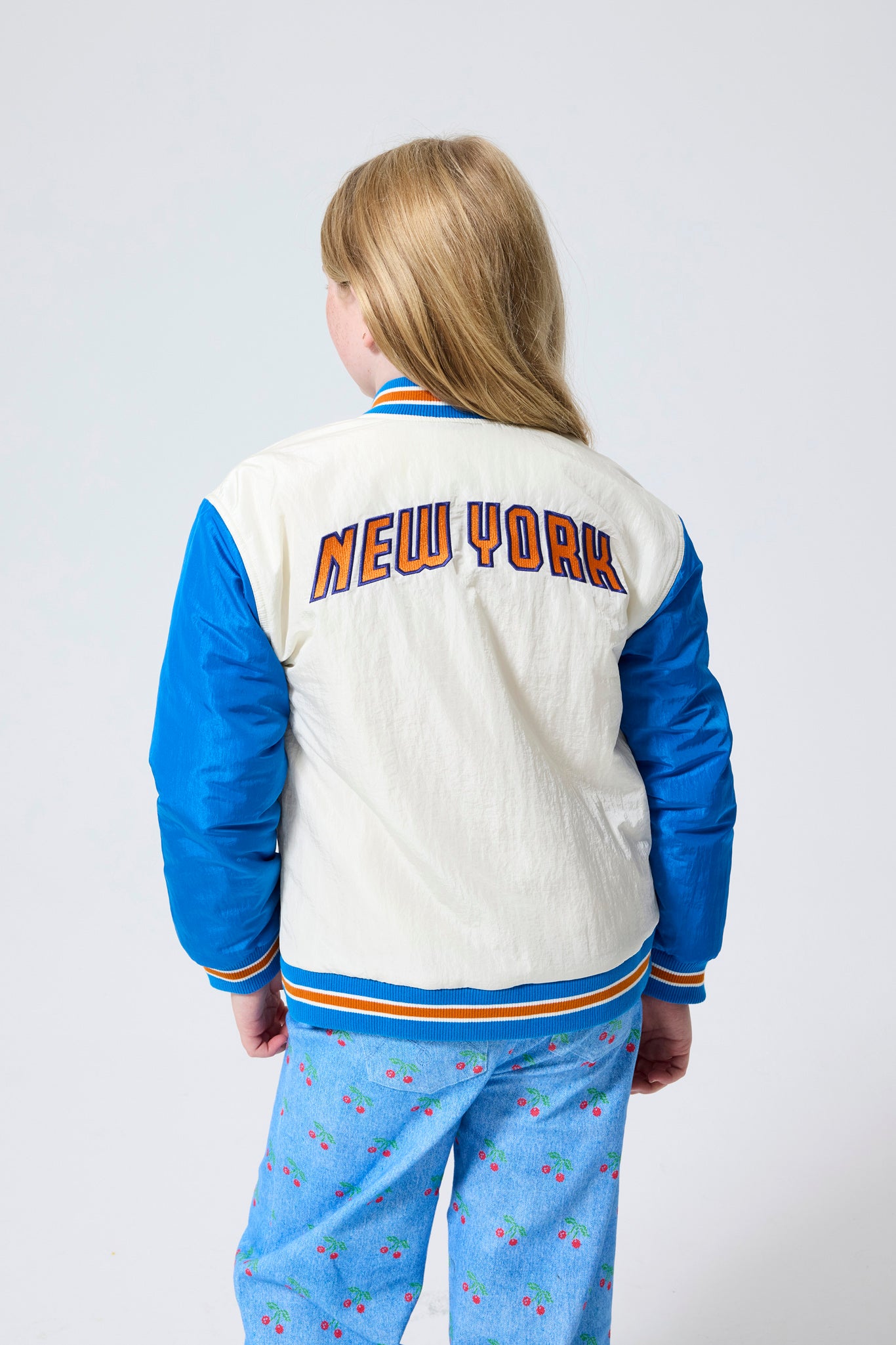 Unisex New York Knicks Youth Bomber Jacket in Sugar Swizzle and Blue