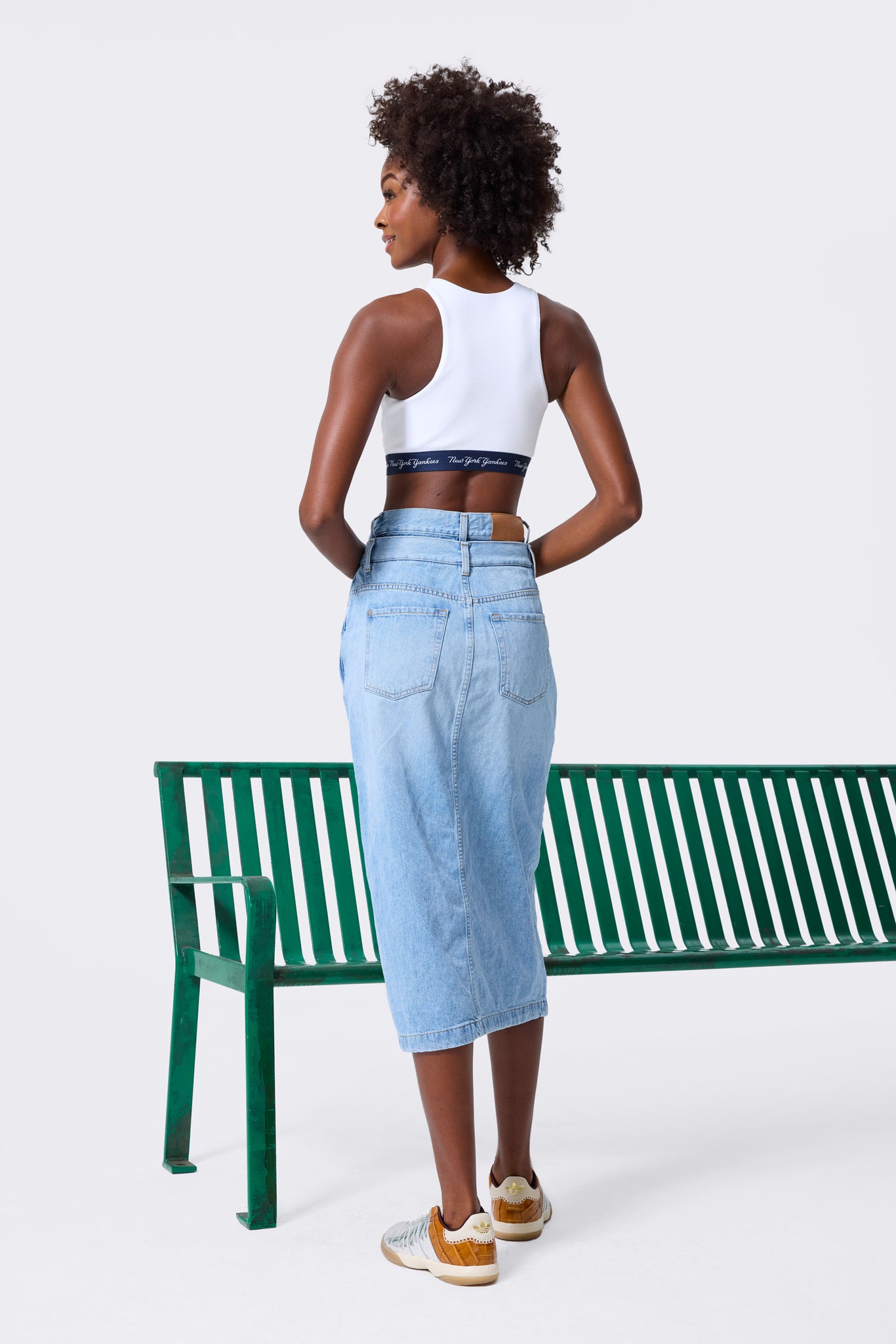 New York Yankees Rib Crop Bra in Bright White