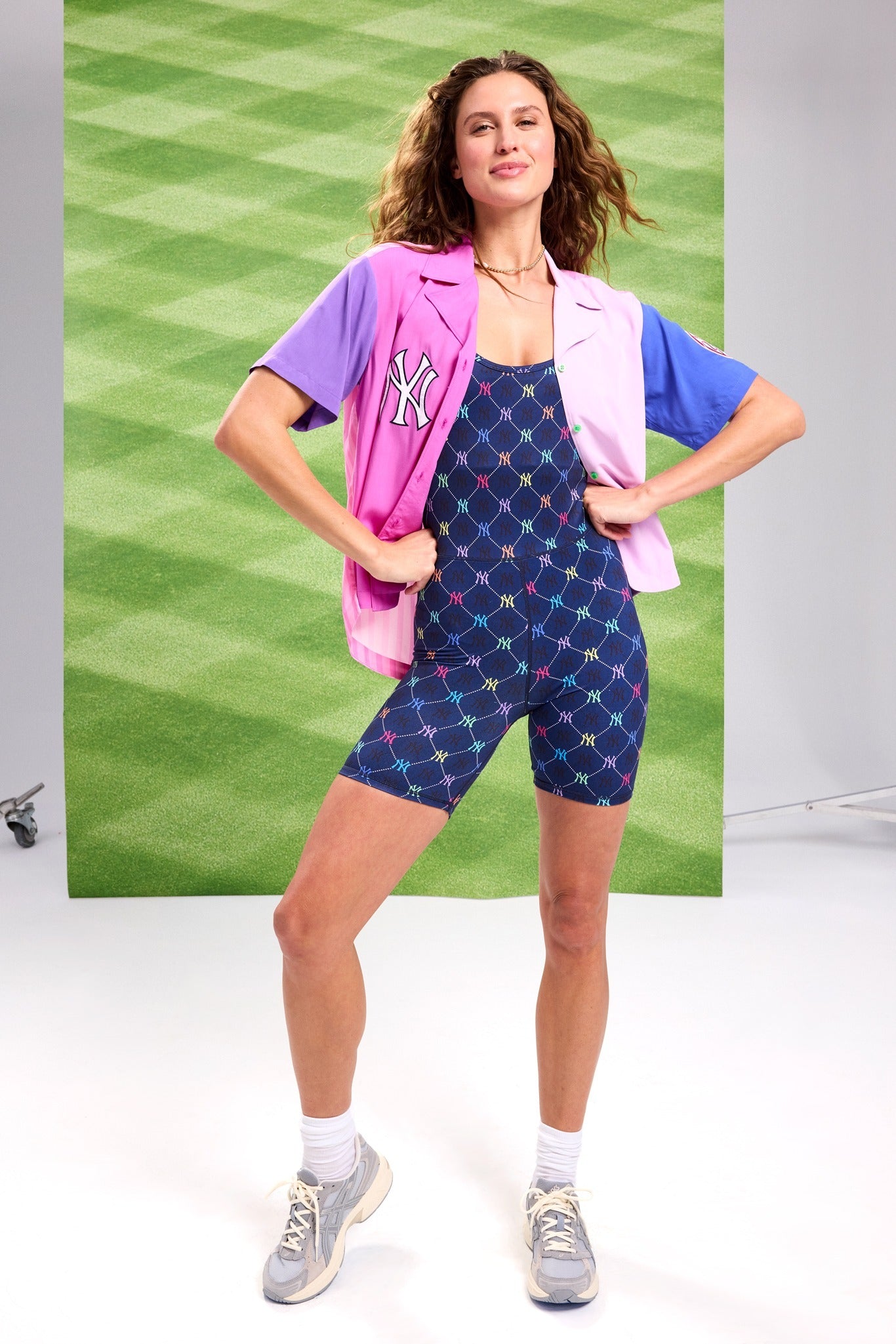 Yankees Short Sleeve Colorblock Button Down in Fashion Colors